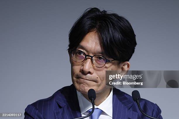 Sadahiko Hayakawa, senior vice president at Sony Group Corp., attends a news conference at the company’s headquarters in Tokyo, Japan, on Wednesday, May 14, 2025. Sony Group offered an underwhelming forecast for the year ahead, with the burden of US tariffs wiping out expectations for an increase in operating profit. Photographer: Kiyoshi Ota/Bloomberg via Getty Images